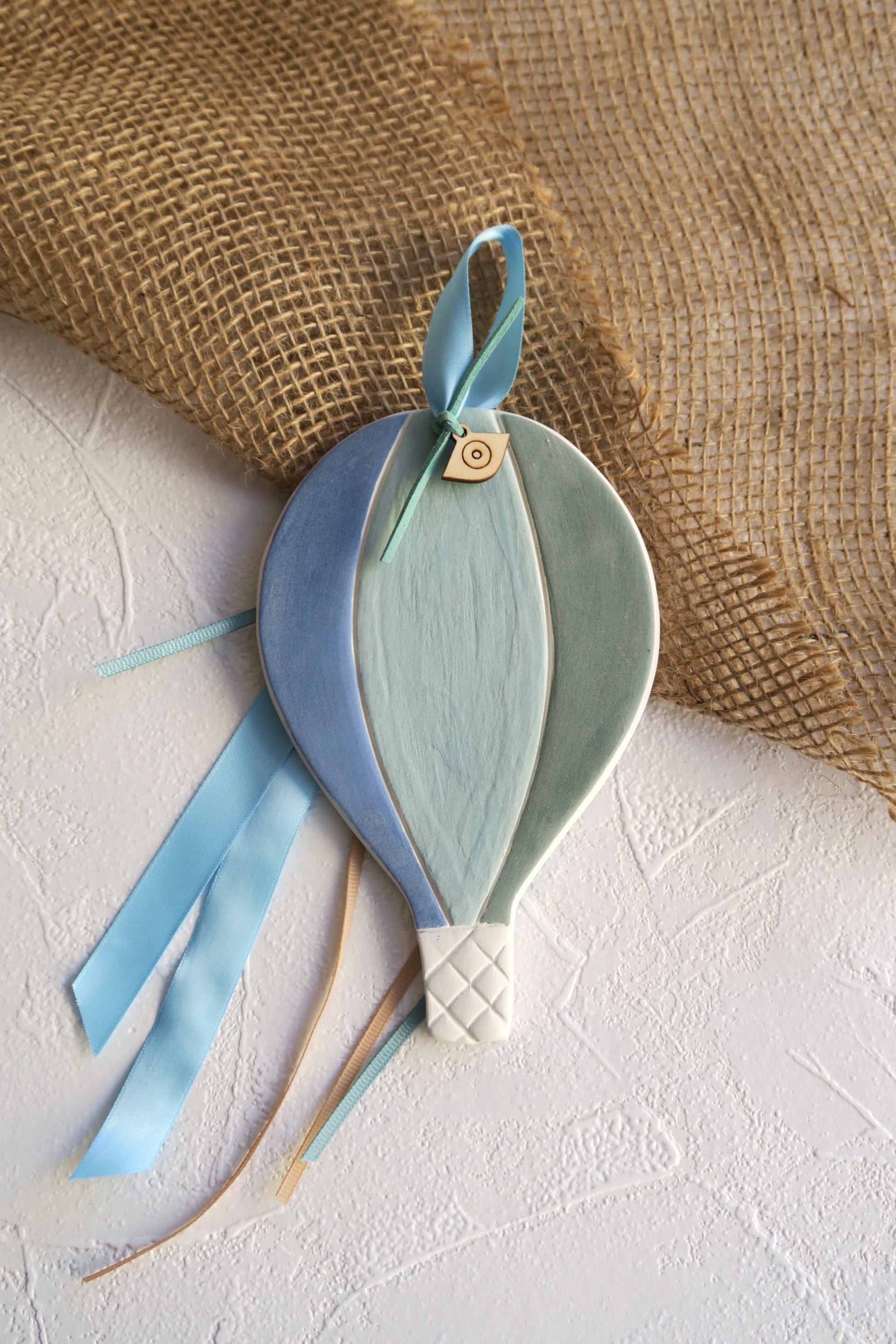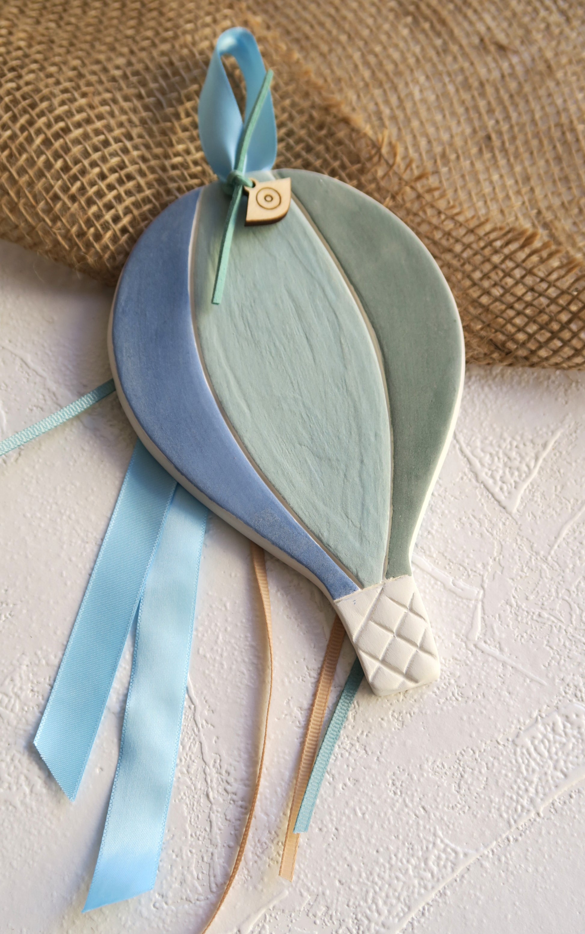 Διακοσμητικό κεραμικό αερόστατο σε γαλάζια απόχρωση.