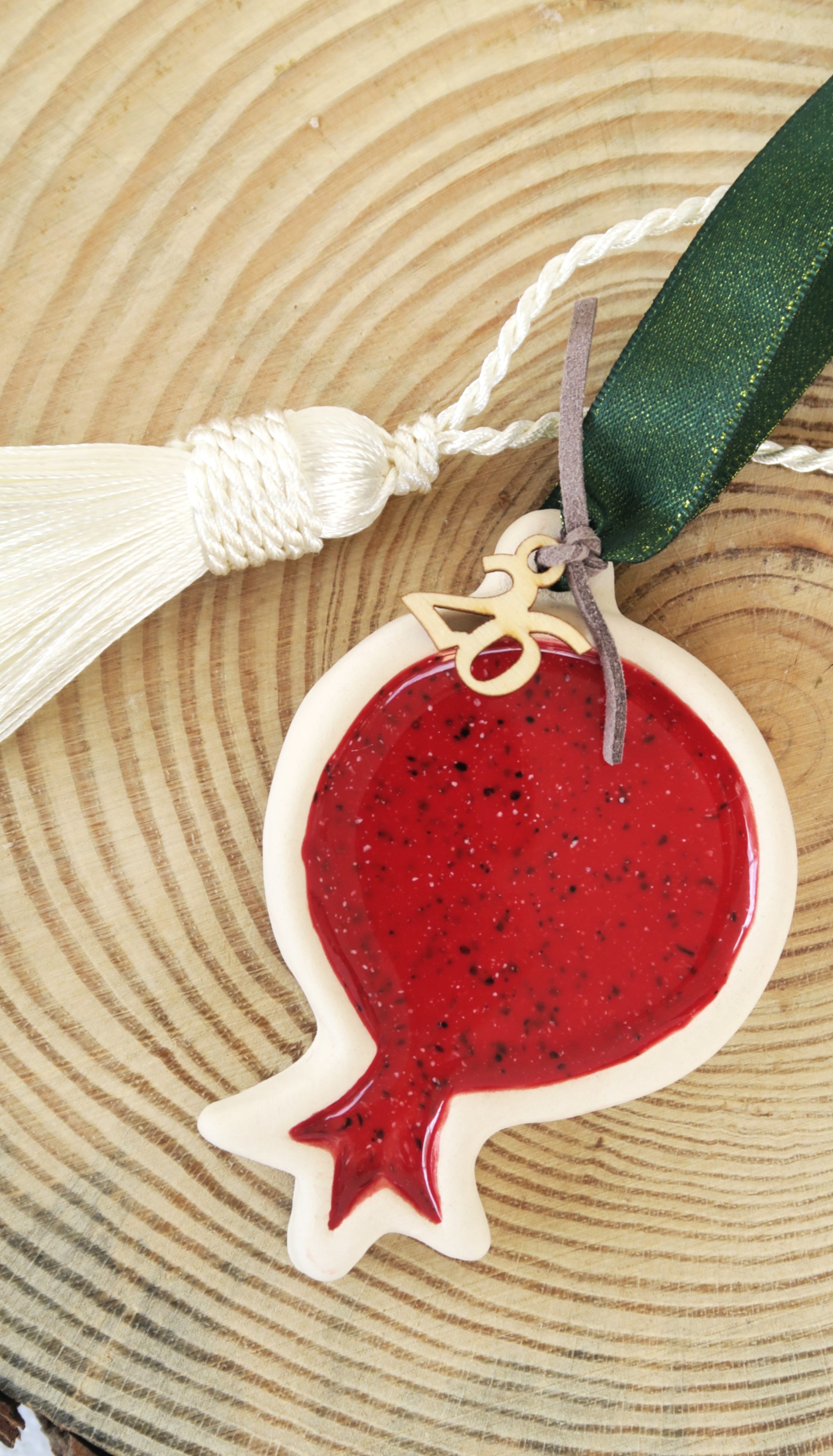 Κεραμικό χειροποίητο γούρι, κρεμαστό, κόκκινο ρόδι.