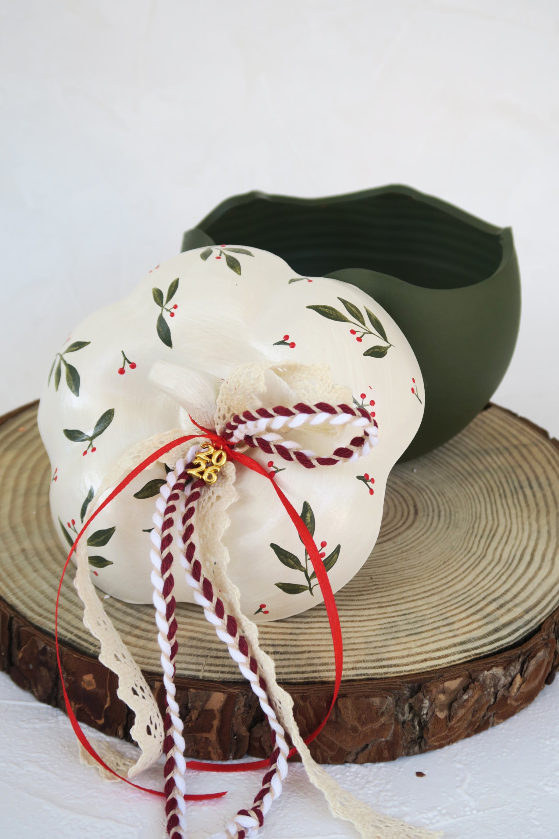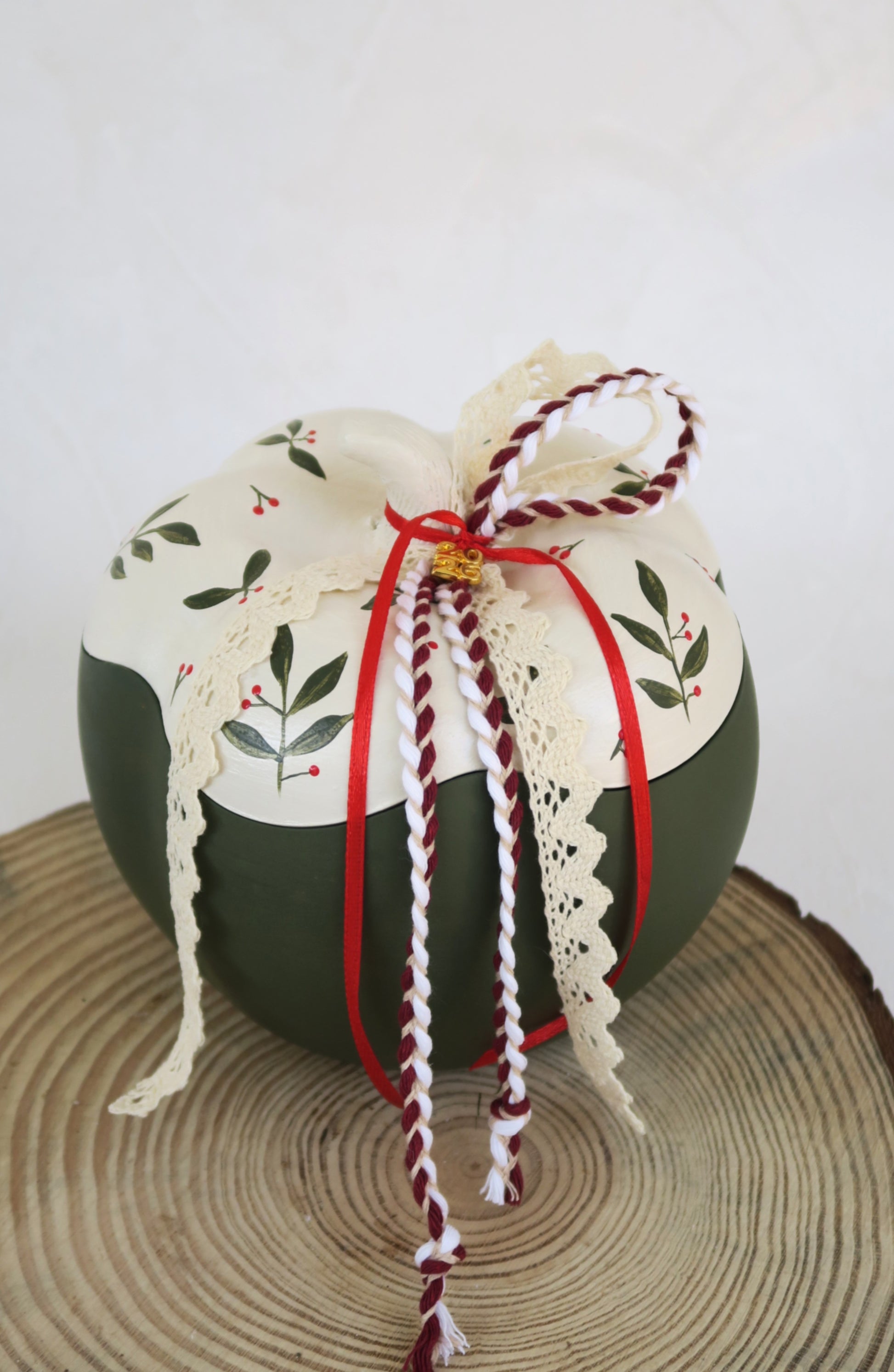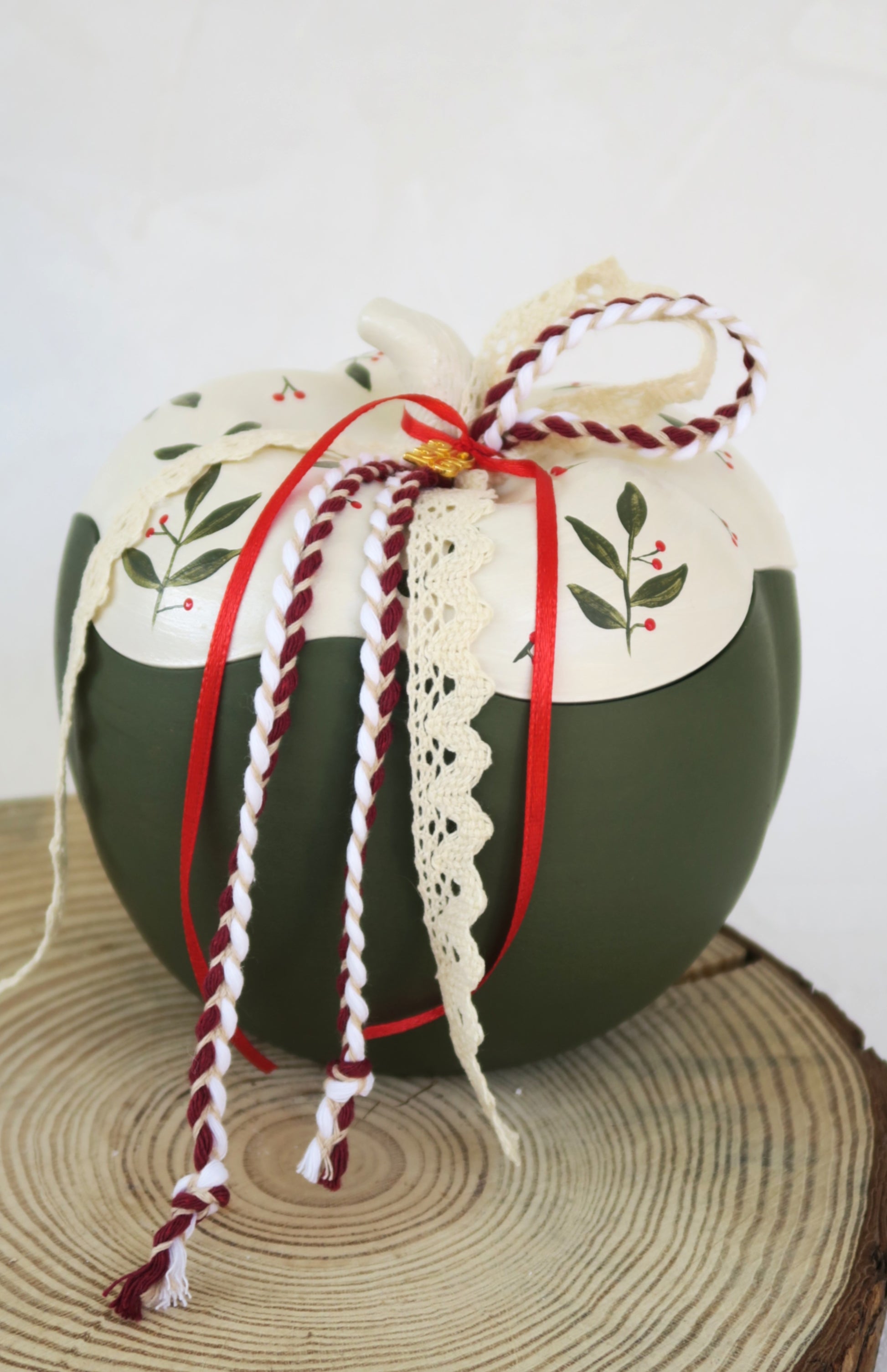 Χειροποίητη κεραμική κολοκύθα, με καπάκι, ζωγραφισμένη στο χέρι.