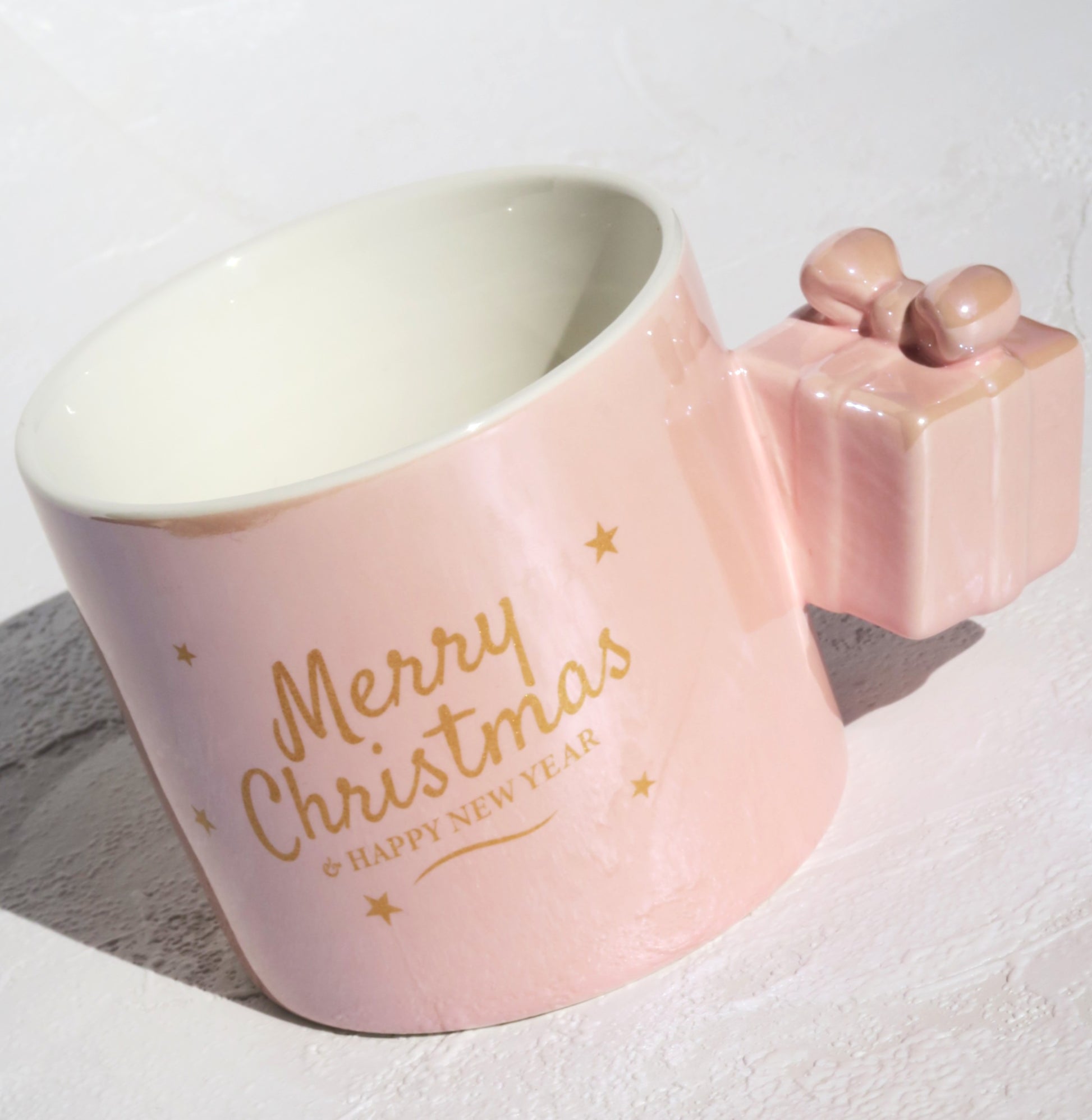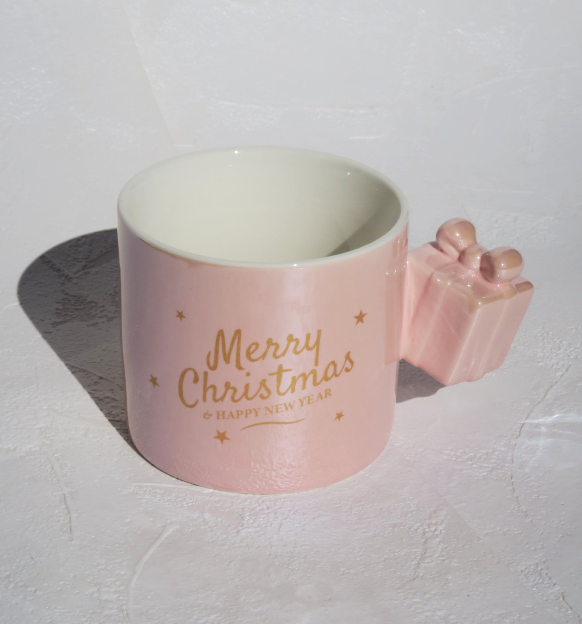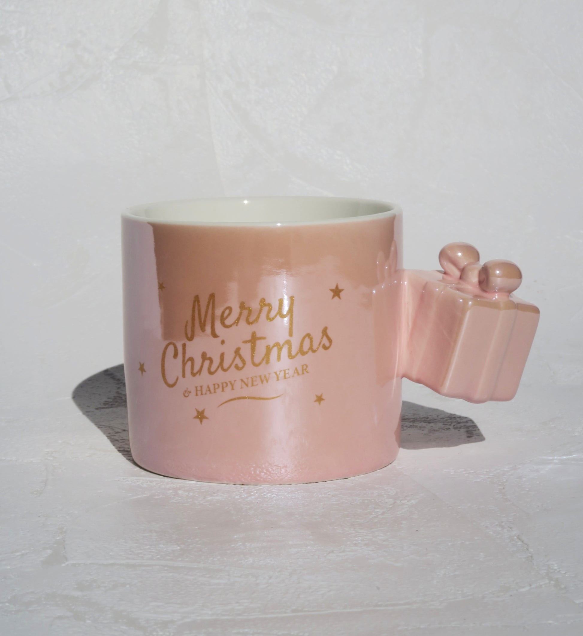 Κούπα σε ροζ περλέ απόχρωση με λαβή δώρο.