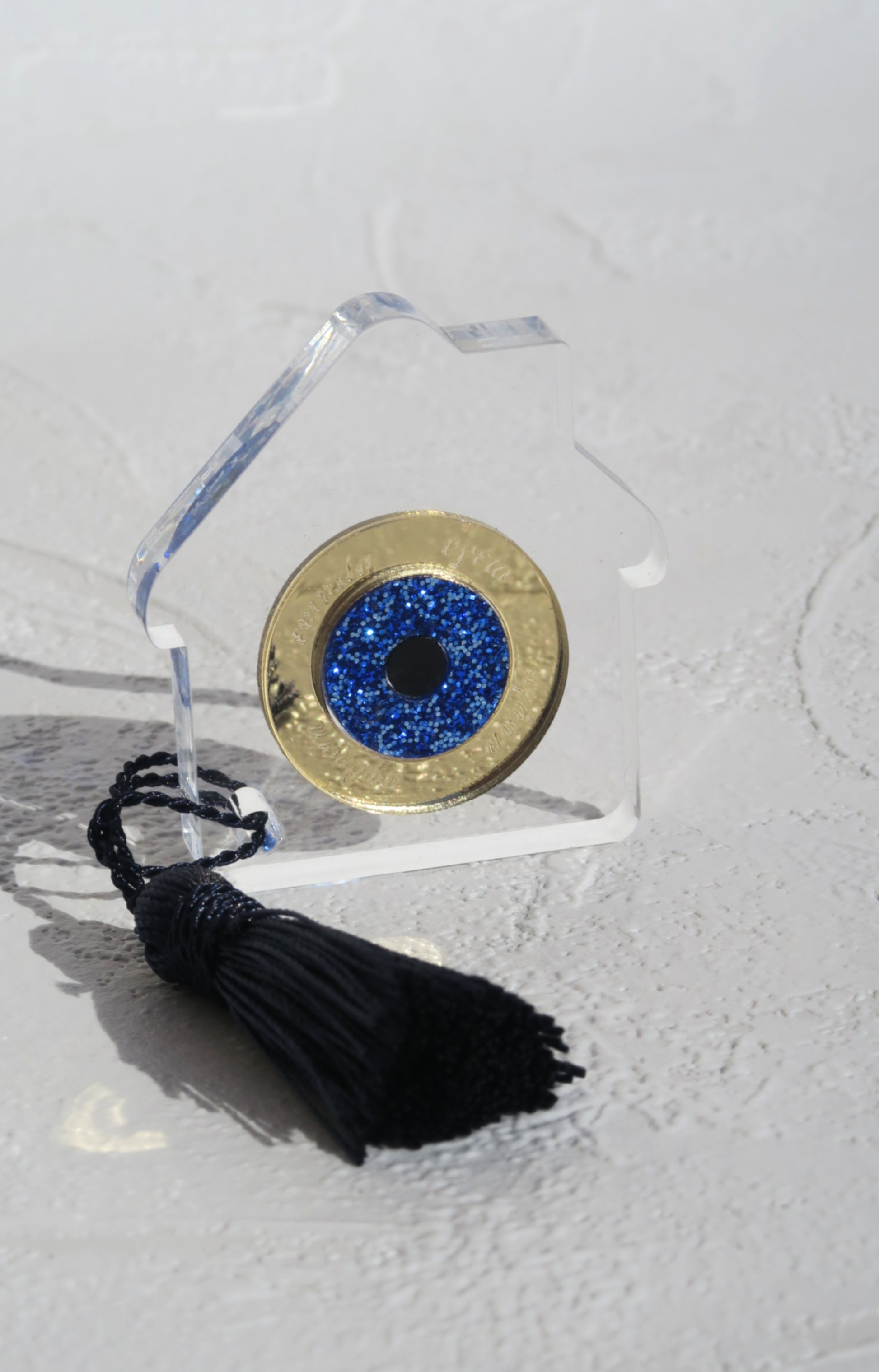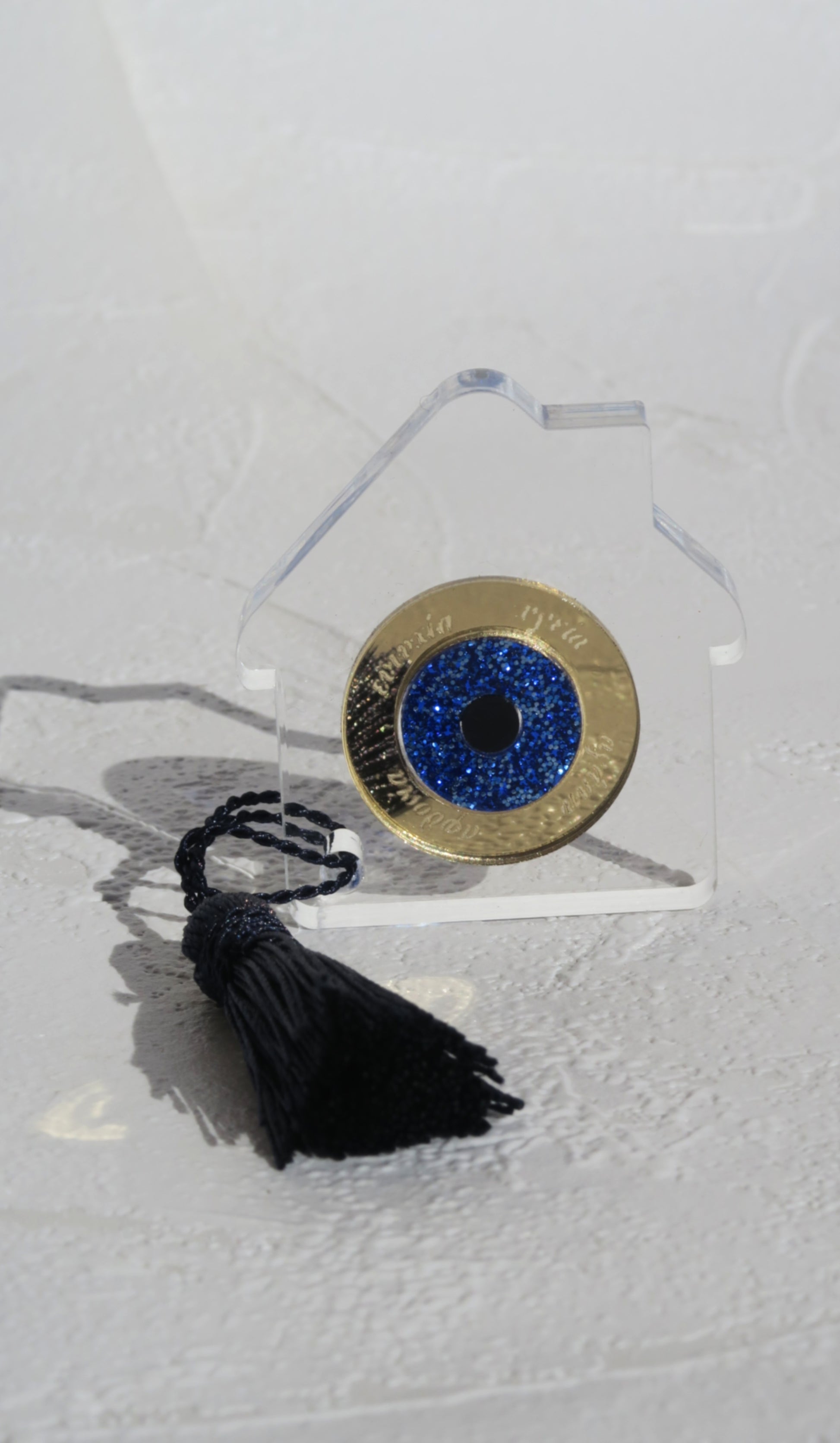 Μικρό σπιτάκι από plexi glass με χρυσό και μπλε μάτι.