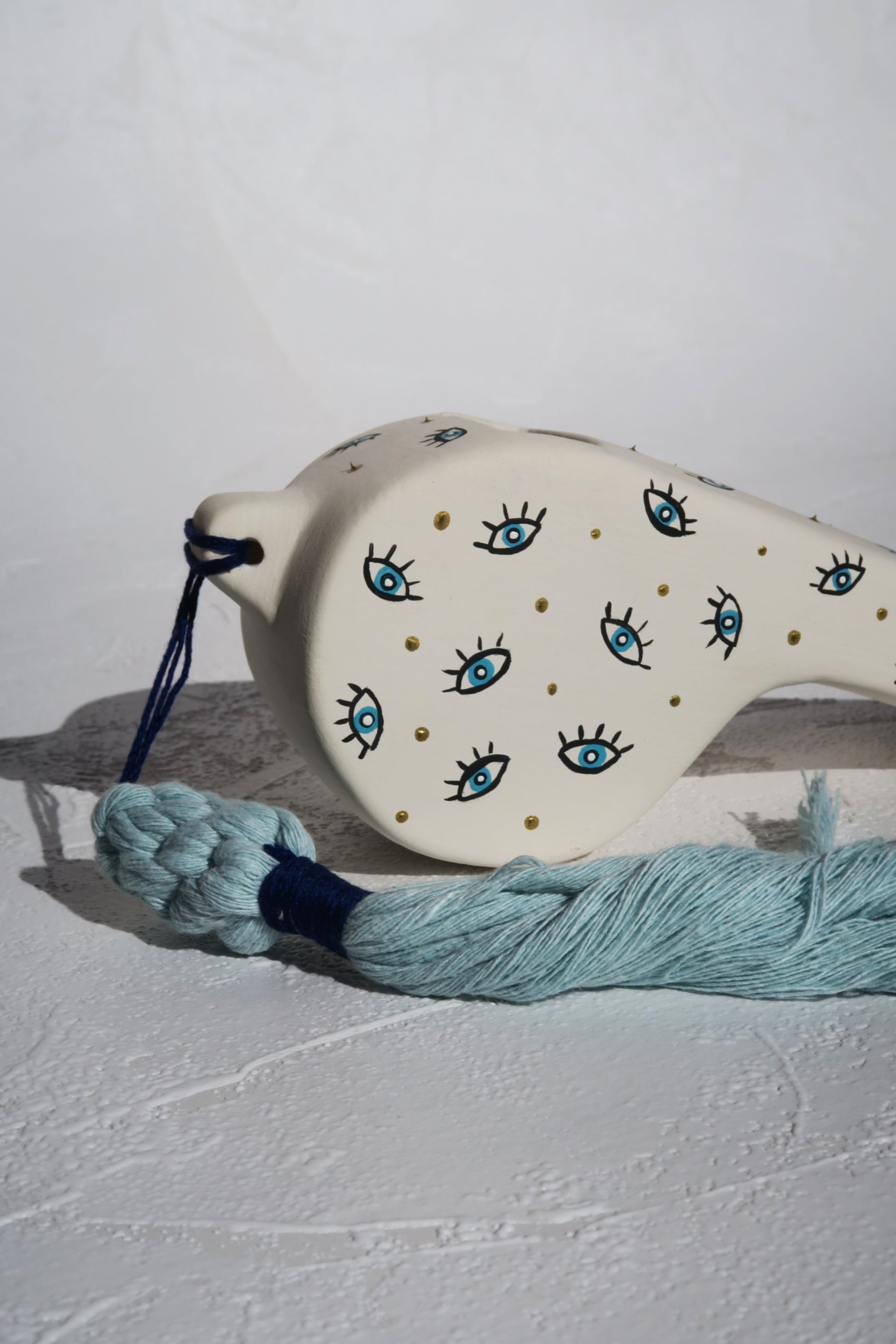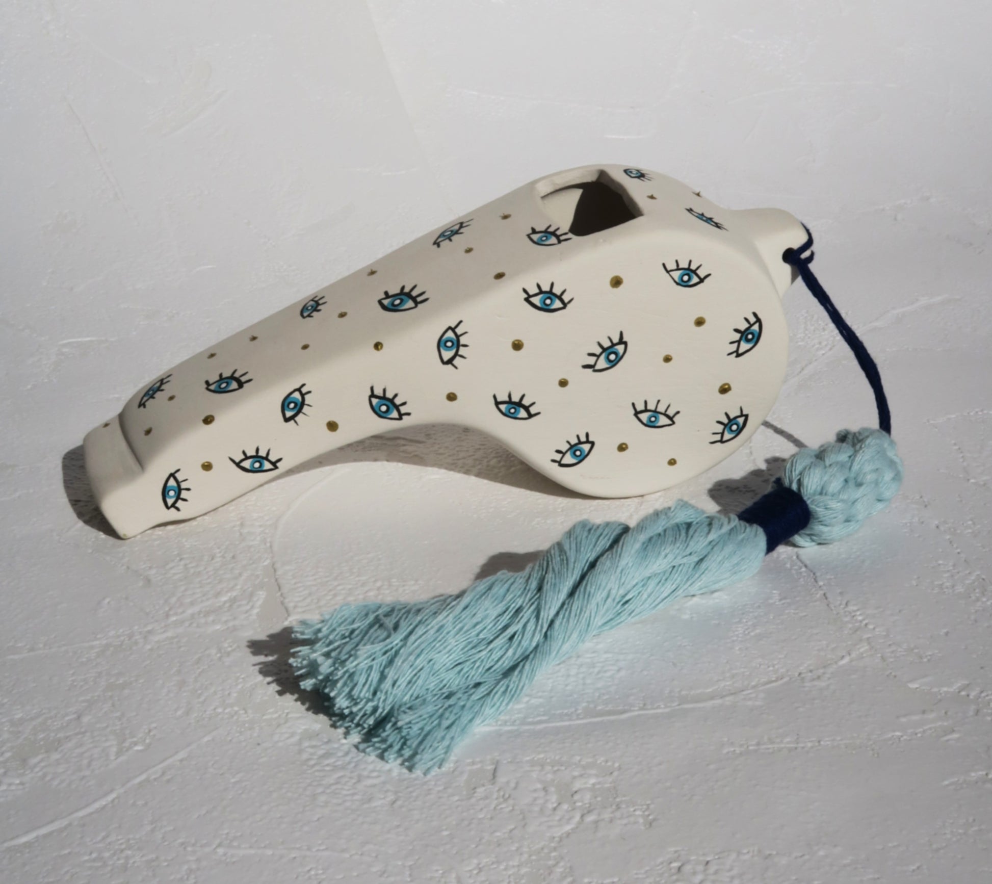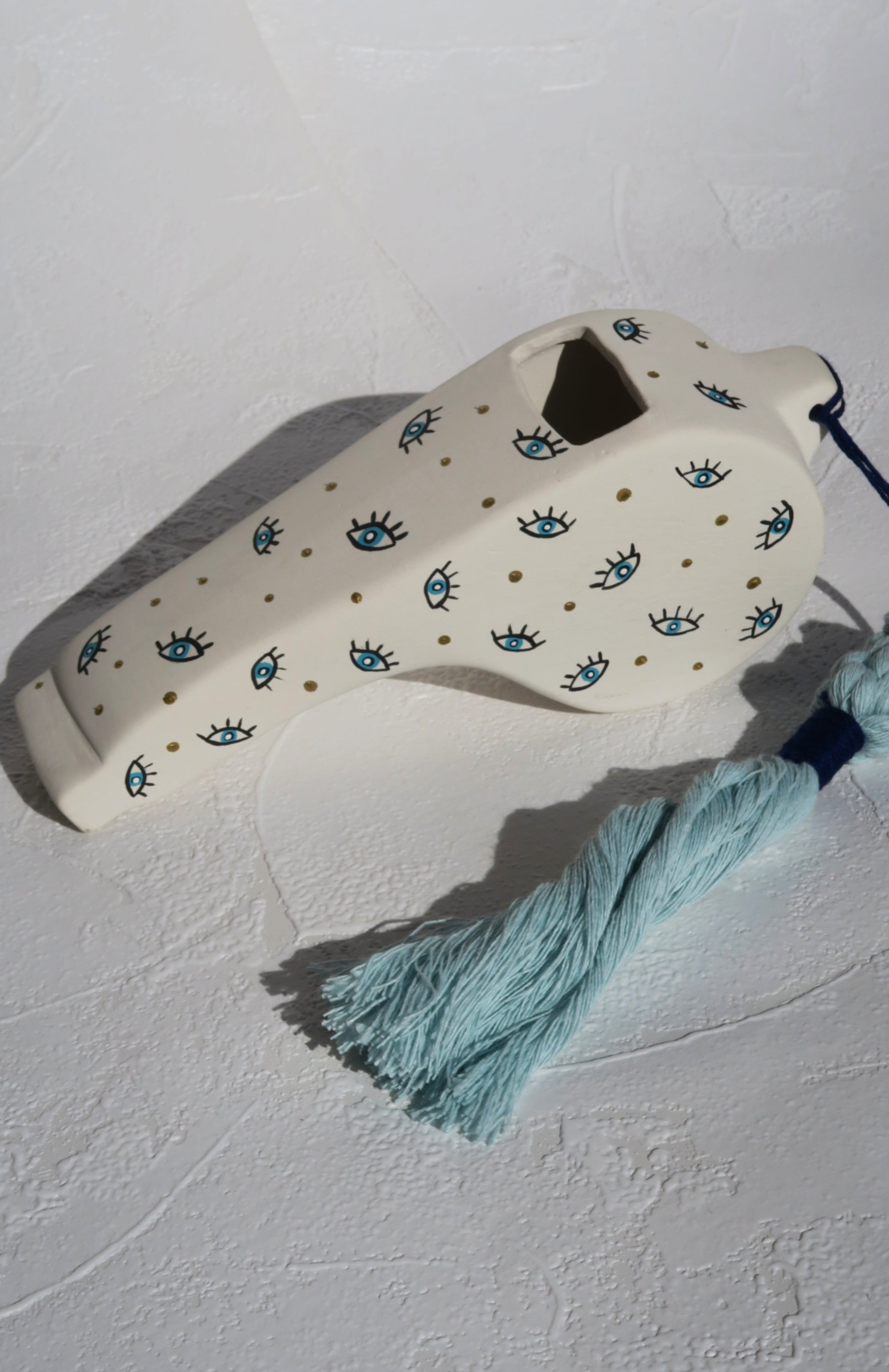 Κεραμική χειροποίητη σφυρίχτρα ζωγραφισμένη στο χέρι.