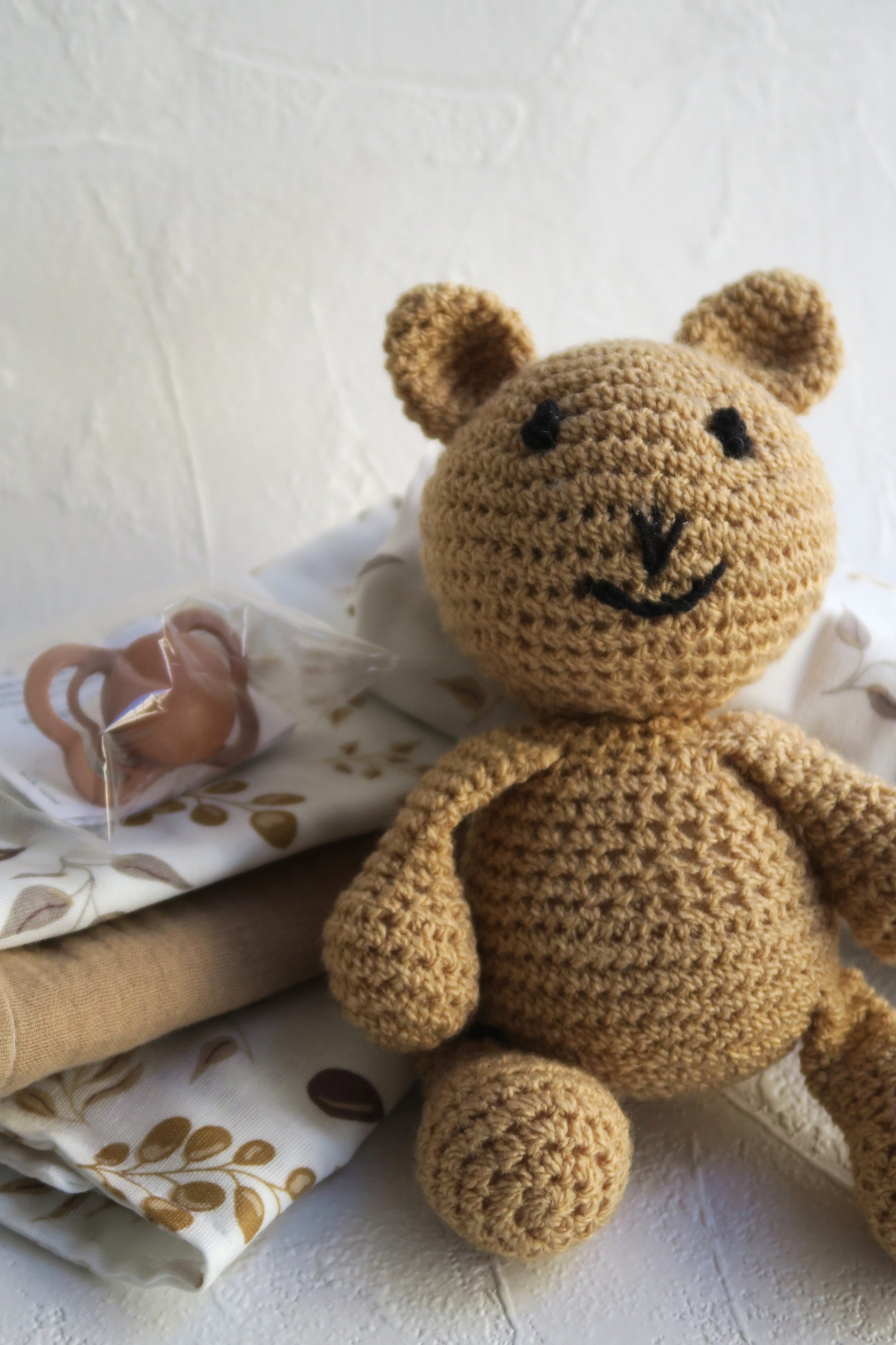 -καφέ πλεκτό αρκουδάκι 20*17εκ