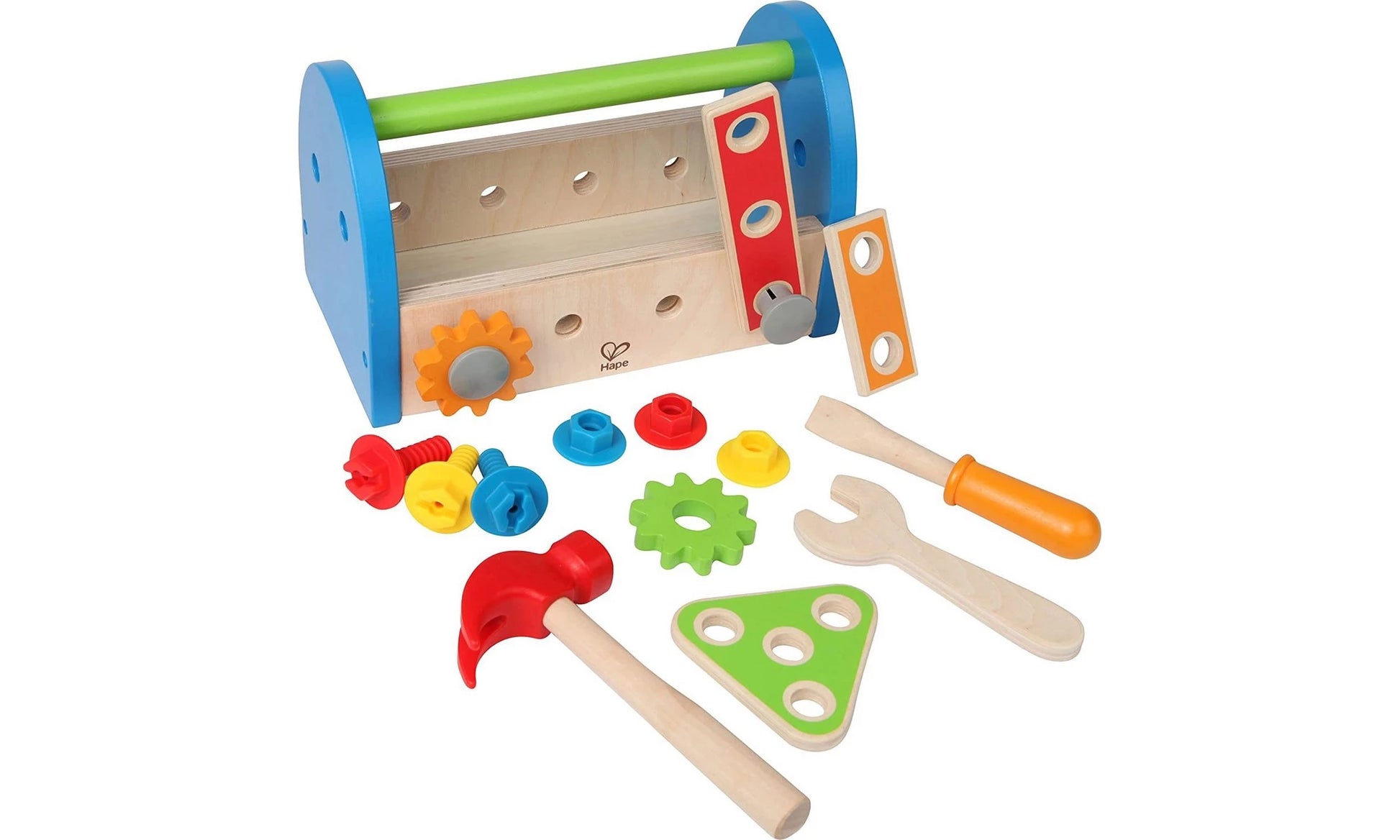 Το Hape Early Explorer Ξύλινο Κασελάκι Εργαλείων Fix It Tool Box περιέχει παξιμάδια, μπουλόνια, και όλα τα εργαλεία που χρειάζονται οι μικροί οικοδόμοι όλα συσκευασμένα σε ένα κασελάκι. Ακόμα περιλαμβάνει έναν σφιγκτήρα ,γαλλικό κλειδί, χάρακα, σφυρί, κατσαβίδι, πολλές βίδες και κομμάτια ξύλου για να εξασκήσουν τις ικανότητές τους.